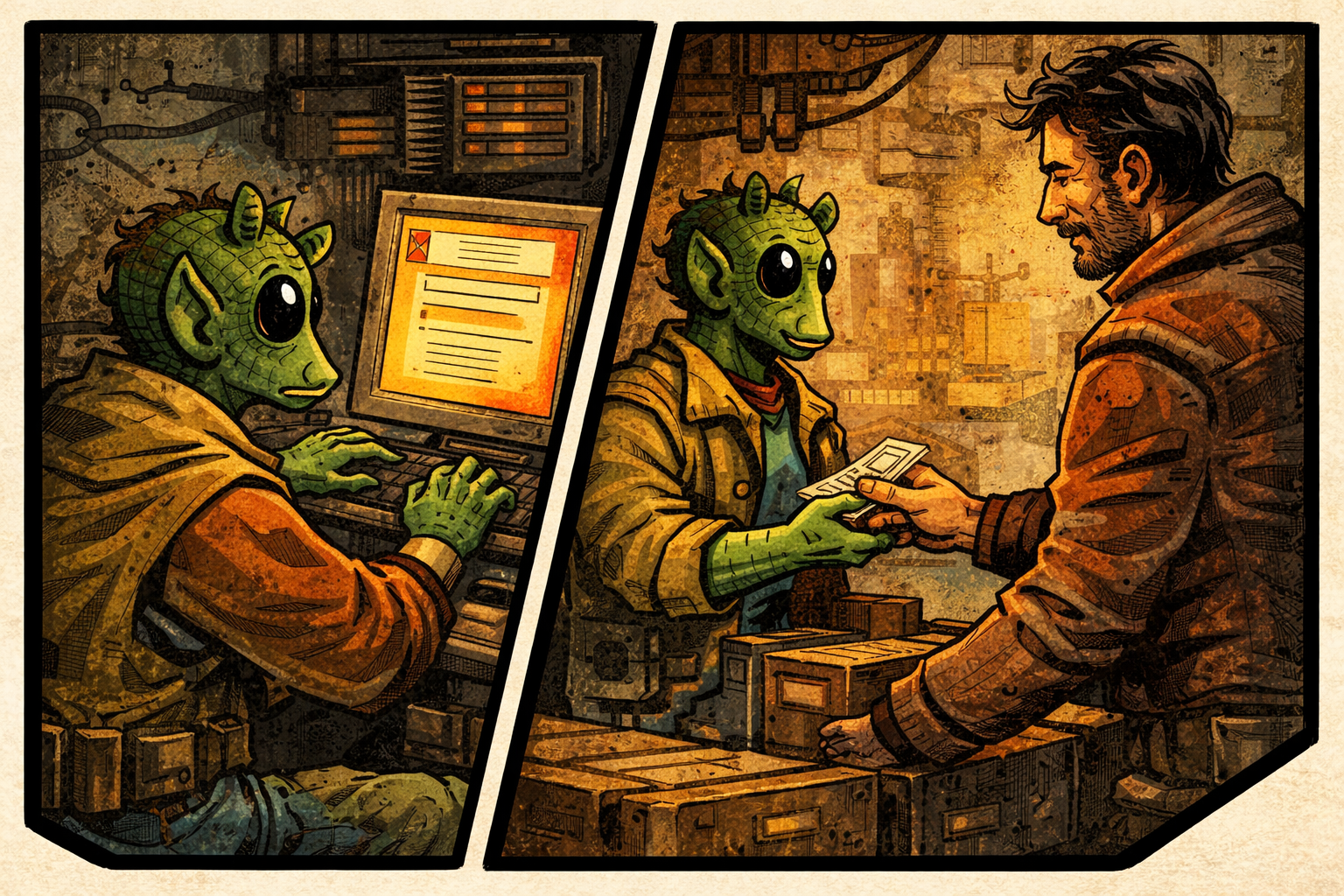 A smuggler captain approached him quietly in a dockside office. The captain needed a cargo clearance filed quickly—something about an incorrect registry number that had been flagged by port authorities.